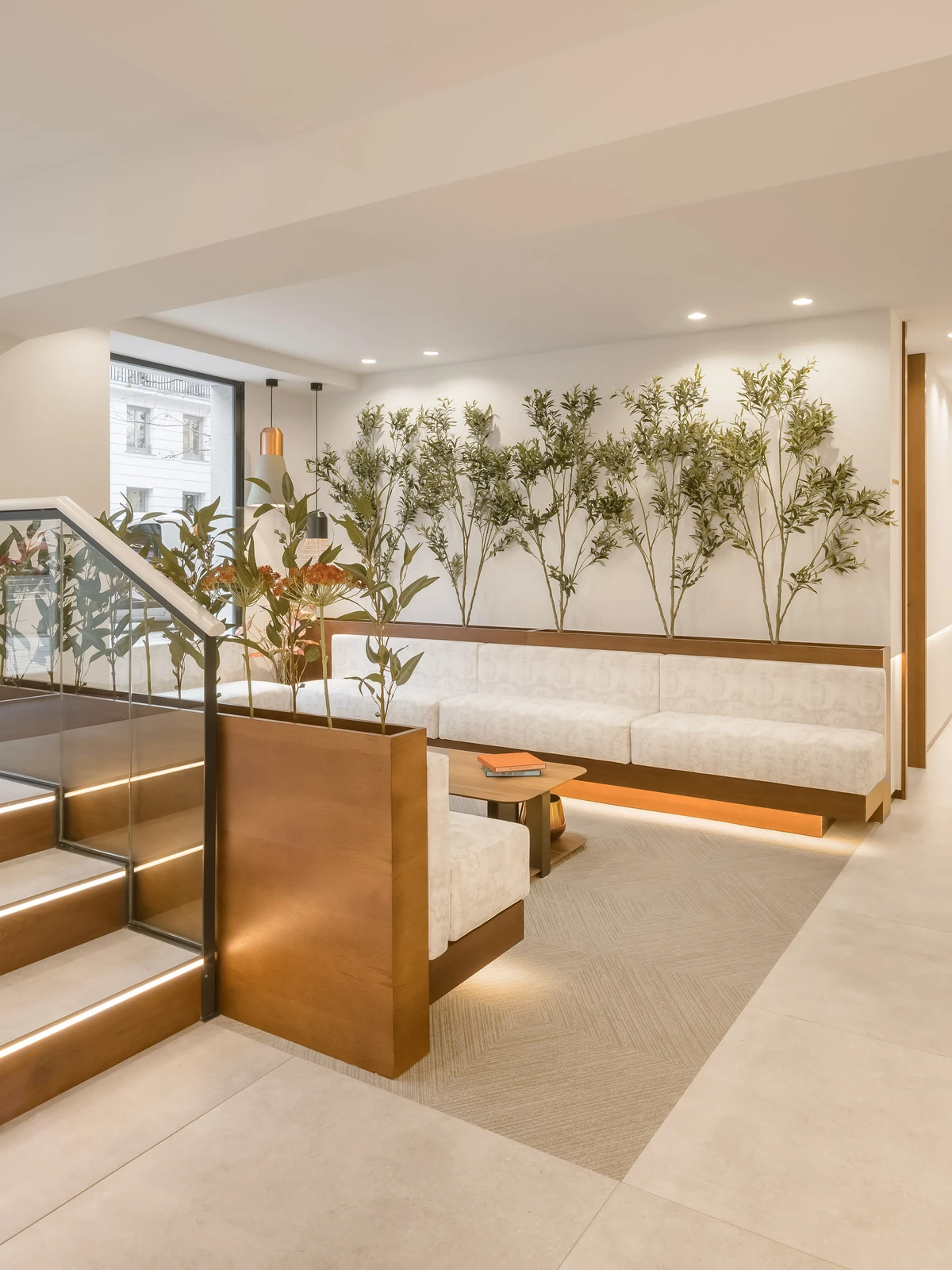 “We were mainly inspired by the beauty and harmony of nature. We chose sustainable materials that reflected our commitment to preserving the environment. Additionally, we focused on white tones, aiming to enlarge the spaces and convey a sense of purity, brightness, and tranquility.”