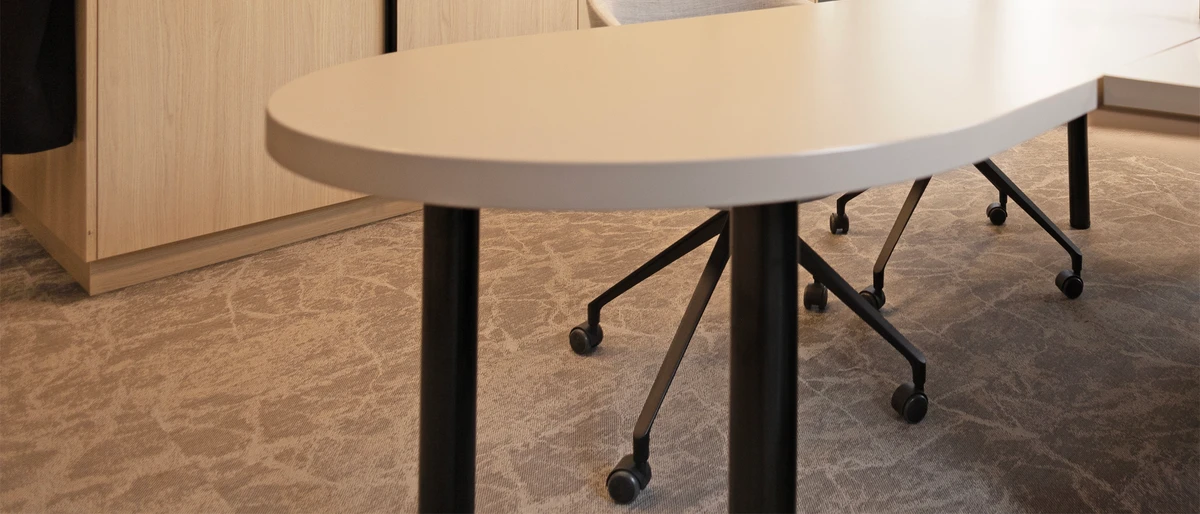 „Der Bodenbelag Marble Emperador von 2TEC2 passt perfekt zu hellem Holz und schwarzem Stahl und schafft eine angenehme Arbeitsumgebung.“ – Beukenholdt interieur op maat