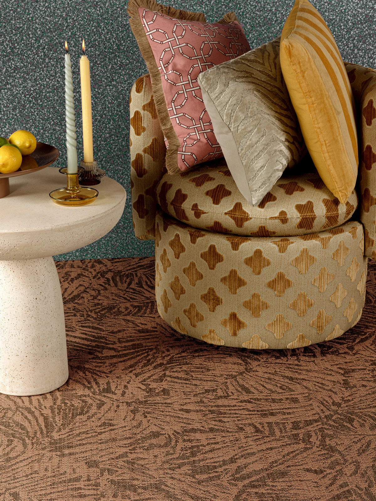 Bienvenidos al mundo de Palma y Alhambra, donde los patrones de la naturaleza y el vibrante espíritu del Mediterráneo cobran vida en paletas cromáticas ricas y relajantes.